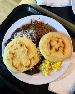 Don’t miss out on the cachapas, sweet corn pancakes paired with fresh cheese. You must also try the desayuno criollo, which consists of two arepas, eggs, black beans, cheese, and your choice of shredded chicken or beef. Yummy!!!