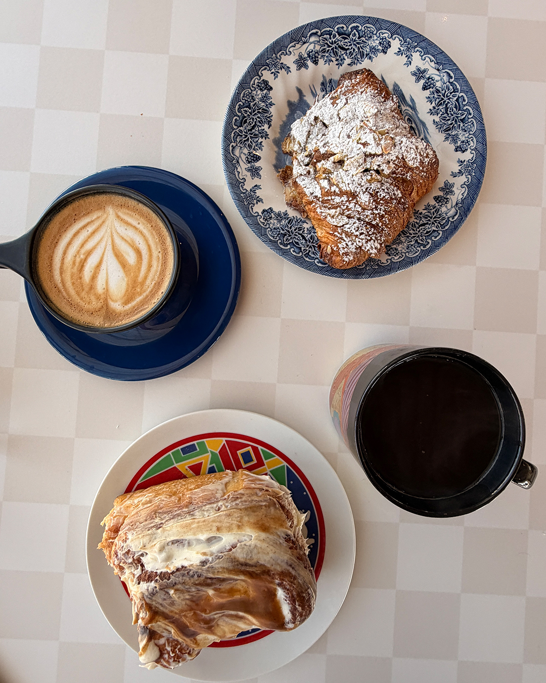 I started with a cappuccino, which was smooth and perfectly balanced. Then came the pastries: an almond croissantrecommended by the cashier and the famous cinnamon roll I originally came for.