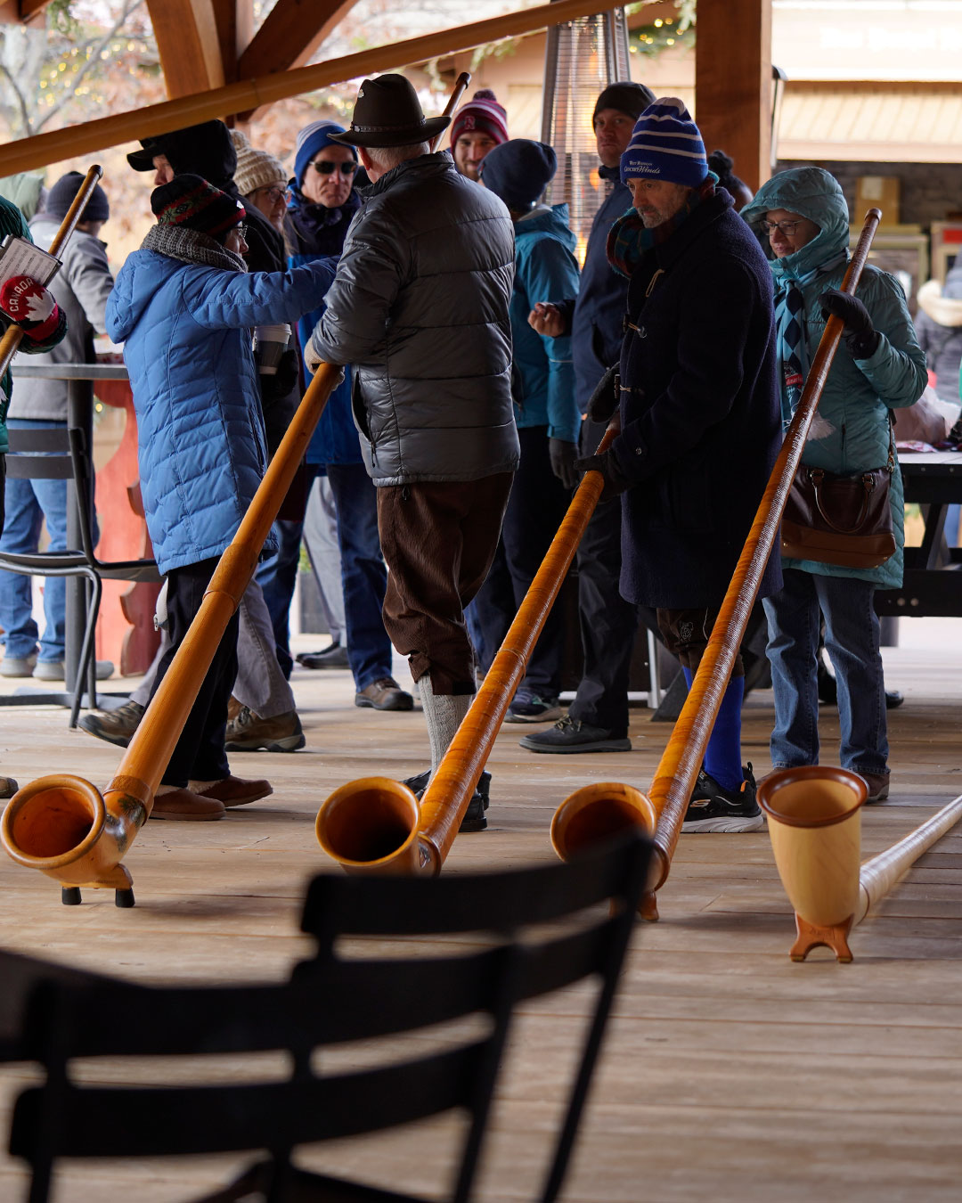 Opening Ceremony – Nov 22, 11:30 AM: Live music from the Midwest Alphorn Retreat and the first appearance of the Christkind.