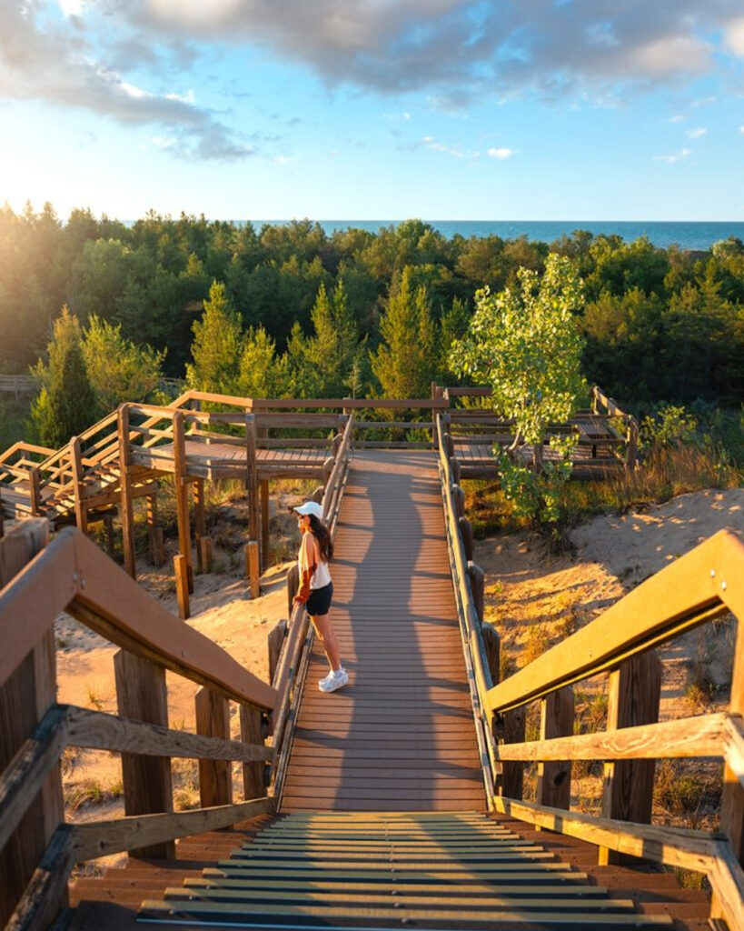 Mild weather. Fewer crowds. Incredible birdwatching during migration season. You can hike the dunes, explore the shoreline of Lake Michigan, and enjoy peaceful lake views before peak summer traffic hits.