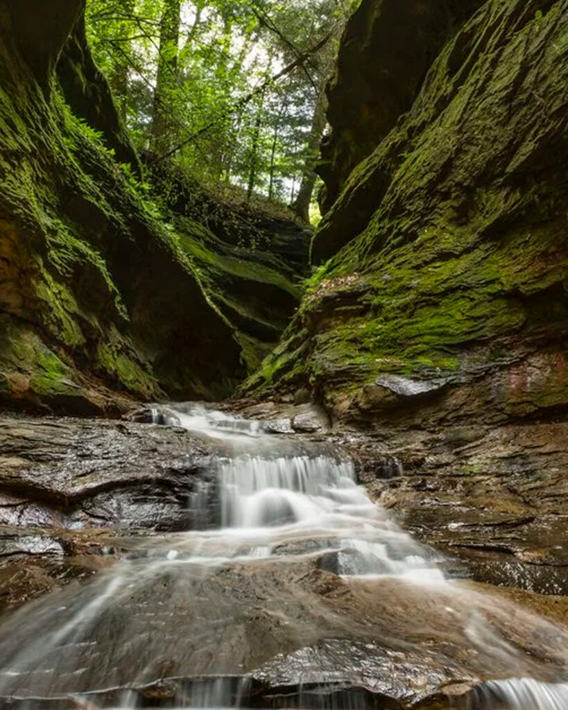 The sandstone gorges, suspension bridge, and flowing creeks are especially beautiful after early spring rains. It’s one of the most iconic hiking destinations in Indiana.