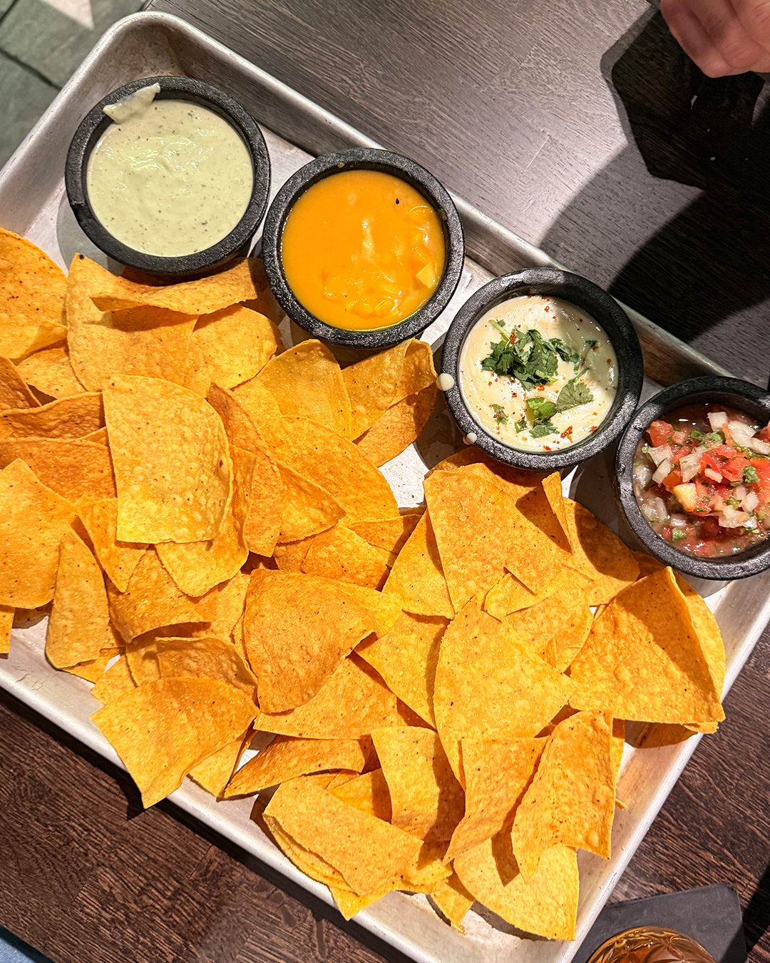 We kicked off the evening with the Chips & Salsa Flight, a combination of two salsas and two dips from options like white queso, guacamole, pico de gallo, and avocado ranch. It’s the perfect starter — bright, flavorful, and made to share. Every dip had its own personality, from the creamy guac to the smooth queso. It’s one of those appetizers that instantly sets the tone: fun, casual, and meant for conversation.