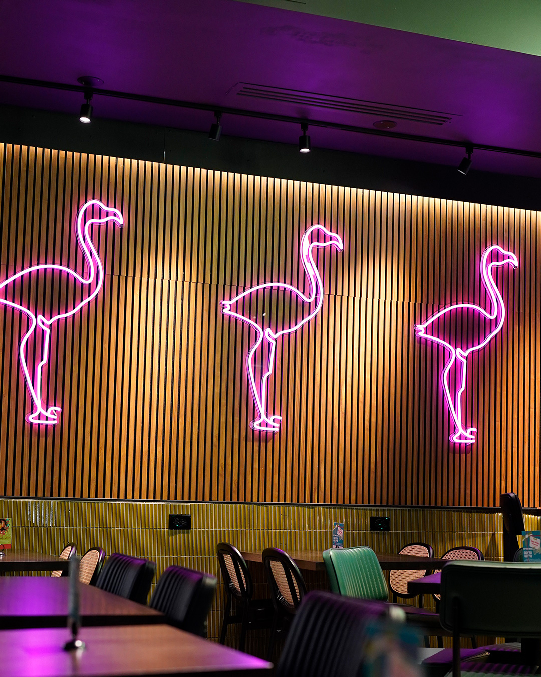 From the moment we stepped in, we could feel that mix of modern design and local personality. The interior blends warm lighting, rustic wood textures, colorful murals, and that signature “Cantina energy” — laid-back but sophisticated. You instantly want to grab a margarita, chat with your friends, and stay longer than you planned.